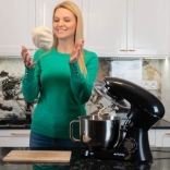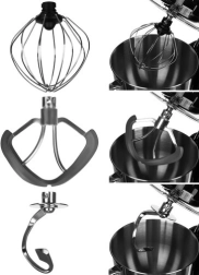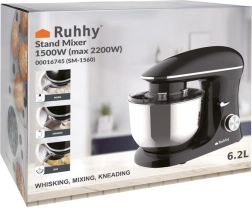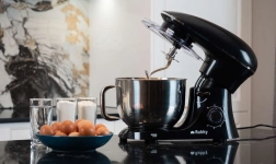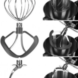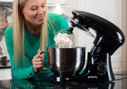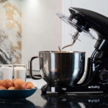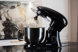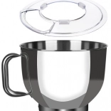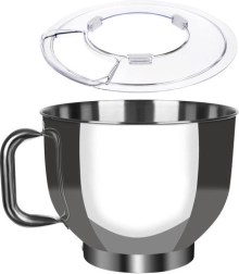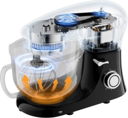 Robot ma dużą stalową misę o pojemności 6,2 litra, która jest wyposażona w solidny uchwyt i osłonę przeciw rozpryskom, co ułatwia pracę i utrzymuje kuchnię w czystości.