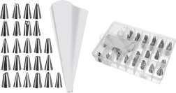 Urządzenie wykonane jest z wysokiej jakości materiałów, takich jak stal nierdzewna i ABS, co zapewnia długą żywotność. W zestawie znajduje się również dekoracyjny cukierniczy worek z 24 końcówkami, który rozszerza możliwości kreatywności w kuchni.