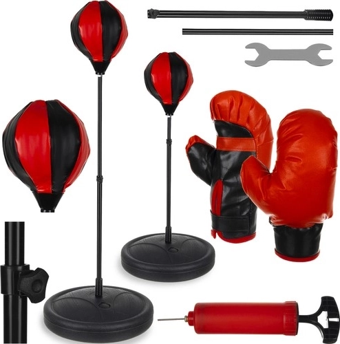 Daj swojemu dziecku wspaniałą możliwość treningu z tym zestawem bokserskim, który obejmuje stojak z piłką napełnianą powietrzem, praktyczną pompkę i rękawice w uniwersalnym rozmiarze. Sprężyna w piłce zapewnia szybki powrót do pierwotnej pozycji, umożliwiając dynamiczny trening.