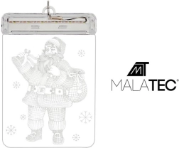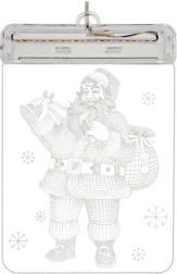 Stwórz magiczną atmosferę Świąt z przezroczystym witrażem LED z motywem Mikołaja. Dwustronne wykonanie świetnie prezentuje się zarówno od środka, jak i z zewnątrz, a ciepłe białe światło subtelnie podkreśla świąteczny nastrój. Idealny na okno, do witryny lub jako lampka nocna w pokoju dziecięcym.