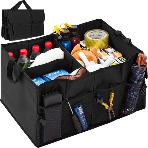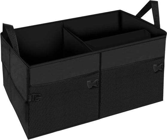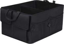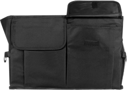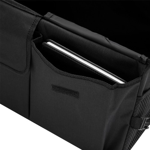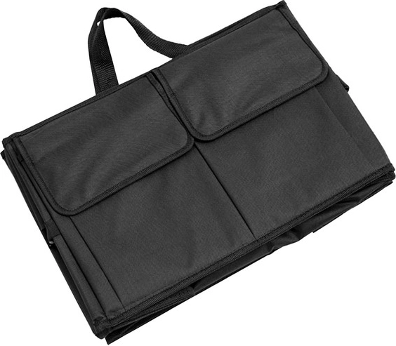 Utrzymuj porządek w samochodzie dzięki pojemnemu, składanemu organizerowi do bagażnika z wytrzymałej tkaniny Oxford. Ma wzmocnione ścianki, 1 dużą i 2 mniejsze komory, boczne kieszenie na rzep oraz kieszenie z siatki. Dzięki uchwytom do przenoszenia łatwo wyjmiesz go z auta, a regulowana długość 26–52 cm oszczędza miejsce.