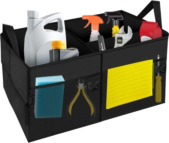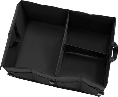 Praktyczny organizer do bagażnika pomoże utrzymać wszystko na swoim miejscu – od zakupów, przez narzędzia, po wyposażenie na wycieczki. Wytrzymała tkanina Oxford i wzmocnione ścianki chronią zawartość i zapobiegają jej przesuwaniu się podczas jazdy. Dzięki przemyślanemu podziałowi z jedną dużą i dwiema mniejszymi komorami oraz bocznym kieszeniom wszystko będziesz mieć pod ręką.