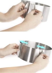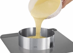 Wysokiej jakości stal nierdzewna jest higieniczna, nie pochłania zapachów i nadaje się do piekarników elektrycznych, gazowych oraz z obiegiem powietrza. W zestawie znajdują się klipsy do stabilizacji średnicy, dzięki którym rant zachowuje kształt podczas wylewania ciasta i pieczenia.