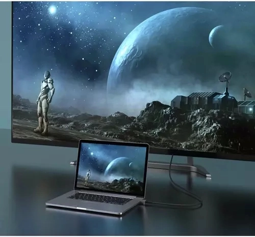 Solidna konstrukcja z metalowymi, pozłacanymi złączami oraz nylonowym oplotem minimalizuje zakłócenia, zapewnia długą żywotność i chroni przed plątaniem. Kabel jest plug & play – bez potrzeby sterowników, wystarczy podłączyć i oglądać.