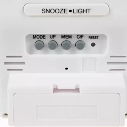 Pomiary klimatu uzupełnia zegar z wyborem 12/24 h, budzik z drzemką 8 minut oraz przełączanie jednostek °C/°F. Funkcja min/max pomaga śledzić zmiany w otoczeniu.
