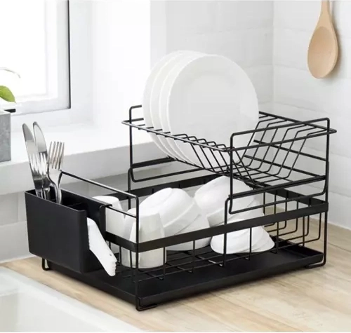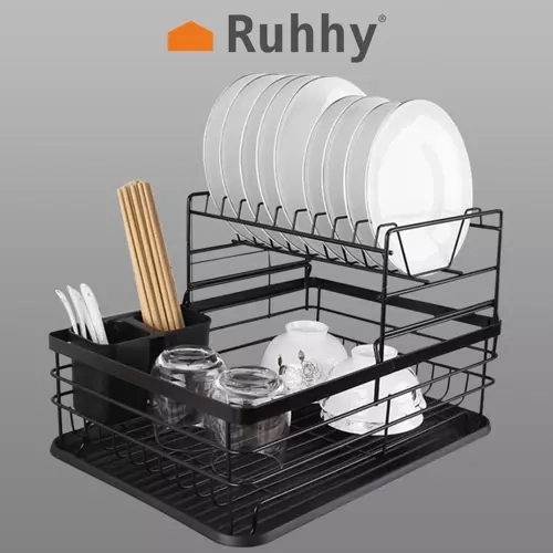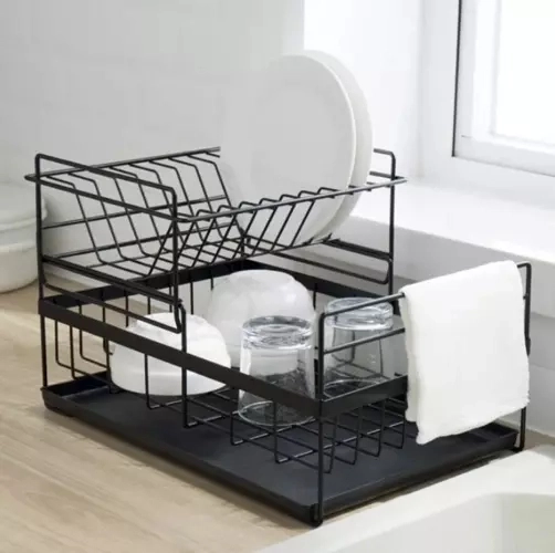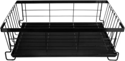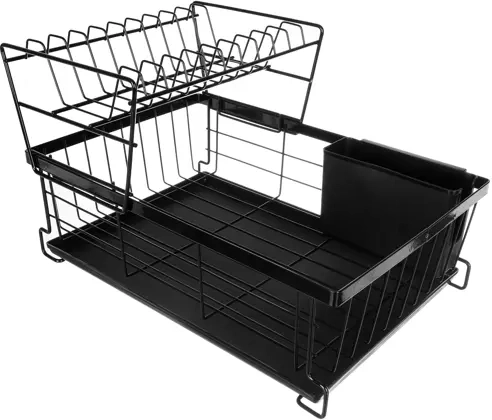 Ta dwupoziomowa suszarka do naczyń efektywnie wykorzystuje miejsce na blacie: górny poziom mieści do 9 talerzy, dolny jest idealny na miski, szklanki i kubki. Konstrukcja ze stali węglowej z trwałą powłoką jest odporna na wilgoć i codzienne użytkowanie, a antypoślizgowe nóżki zapewniają stabilność i bezpieczeństwo nawet przy większym obciążeniu.