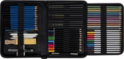 Ten uniwersalny zestaw do rysowania, malowania i szkicowania oferuje bogaty wybór ołówków grafitowych i węglowych, kredek akwarelowych, metalicznych i klasycznych wraz z praktycznymi akcesoriami do cieniowania i detali. Solidne materiałowe etui utrzymuje wszystkie przybory w porządku i gotowe do użycia w domu i w podróży.