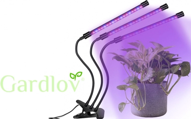Lampa do uprawy roślin LED GARDLOV łączy czerwone (630 nm) i niebieskie (470 nm) spektrum, które wspiera fotosyntezę i sprzyja wszystkim fazom wzrostu – od kiełkowania i ukorzeniania, przez bujny wzrost, aż po kwitnienie. Trzy niezależne panele świetlne na elastycznych ramionach zapewniają równomierne pokrycie i łatwe kierowanie światła.