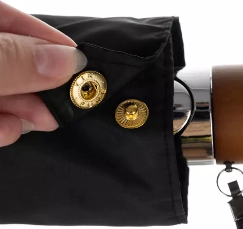 Wodoodporny pokrycie z wysokiej jakości poliestru skutecznie odpycha wodę i zachowuje kształt nawet przy silniejszym wietrze. Kompaktowa długość po złożeniu 32 cm oraz dołączone etui ułatwiają przenoszenie. Drewniana ergonomiczna rączka z paskiem jest wytrzymała i przyjemna w dotyku – idealna dla pań, panów i starszych dzieci.