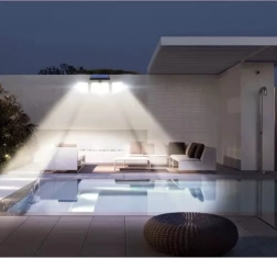 Lampa wyposażona jest w czujnik ruchu, który reaguje na obecność osób, a kąt świecenia można ustawić dla optymalnego pokrycia przestrzeni.