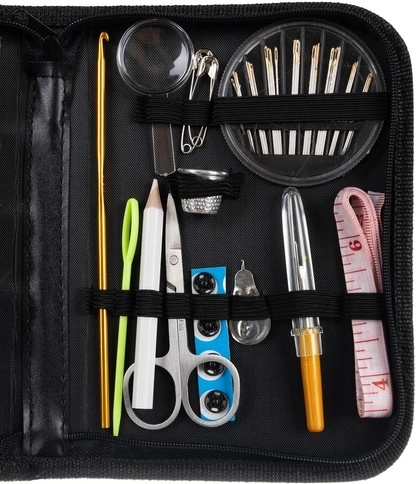 Zestaw zawiera narzędzia i akcesoria do szybkich i łatwych napraw i poprawek odzieży, co oszczędza czas i koszty profesjonalnych usług.