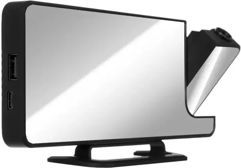 4 w 1 – zegar, budzik, lusterko i projektor! Wszystko w jednym kompaktowym urządzeniu. Budzik ma lustrzany front, na którym wyświetlane są informacje, takie jak czas. Kompaktowe wymiary i niska waga pozwalają zabrać go w podróż. Świetnie sprawdzi się również podczas spania w namiocie, gdzie lustrzany front umożliwia szybki makijaż i uczesanie.