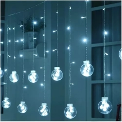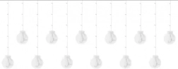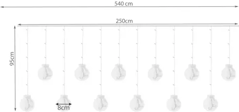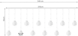 Designerska kurtyna świetlna z przezroczystymi, okrągłymi kloszami rozświetli wnętrze i otoczenie przyjemnym, czystym światłem. Dzięki 108 LED równomiernie oświetla większą powierzchnię, a niskie zużycie energii sprzyja codziennej dekoracyjnej iluminacji. Zintegrowany sterownik na przewodzie oraz dołączony pilot umożliwiają łatwy wybór trybów i jasności.