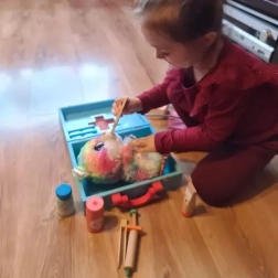Od stetoskopu i termometru po nożyczki, pęsetę oraz „leki”. Dzieci mają pod ręką wszystko, czego potrzebują do badania pacjenta i pielęgnacji ząbków.
