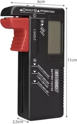 Praktyczny, kieszonkowy tester baterii z czytelnym wyświetlaczem LCD natychmiast pokaże poziom naładowania. Bez zasilania mierzy szeroki zakres ogniw, w tym AA, AAA, C, D, 9V i baterie guzikowe. Kompaktowa konstrukcja i łatwa obsługa czynią go idealnym narzędziem do domu, warsztatu i w podróży.
