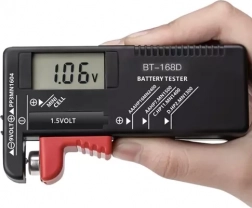 Koniec zgadywania, która bateria jest jeszcze użyteczna. Ten uniwersalny tester z cyfrowym wyświetlaczem LCD natychmiast pokazuje napięcie i pomaga szybko rozróżnić rozładowane, słabe i w pełni naładowane ogniwa. Dzięki mechanicznemu pomiarowi bez własnego zasilania jest zawsze gotowy do użycia.