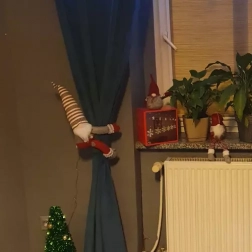 Stwórz w domu przytulną, świąteczną atmosferę z dekoracyjnym skrzatem, który nie tylko zdobi, ale też praktycznie podtrzymuje zasłony. Miękkie ciało, puszysta broda i pleciona czapka wprowadzają ciepły zimowy klimat, a rzepy na końcach rąk i nóg umożliwiają łatwe przymocowanie skrzata do tkanin lub poręczy.