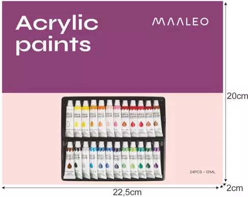 Odkryj świat kolorów i kreatywności z tym zestawem farb akrylowych. Każda tubka zawiera 12 ml farby, odpowiedniej do stosowania na różnych powierzchniach. Zestaw zawiera: