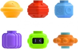 Każdy element ma inny kształt, kolor i fakturę, a do tego działa jak grzechotka. Dzieci uczą się rozpoznawać kształty, kolory i liczby, rozwijają słuch oraz myślenie logiczne.