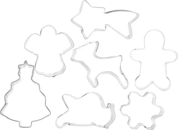 Ostra krawędź łatwo przetnie nawet schłodzone ciasto i utworzy czyste brzegi. Wymiary jednej foremki to około 9 × 7 × 2,2 cm – idealne do bożonarodzeniowych ciasteczek.