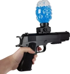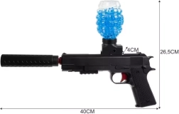 SPECYFIKACJA -materiał: plastik; bateria: 500 mAh; napęd: automatyczny; zasilanie: bateria; naboje: żelowe kulki + piankowe strzały; średnica kulki: od 7 do 8 mm; zasięg: do ok. 15 m; kolor: czarny; pojemność magazynku: 600 BBs; liczba kulek do samodzielnego przygotowania: 6000 szt.; liczba strzał: 5 szt.; wiek: 14+; wymiary: 40 x 26,5 x 4 cm; waga: 381g; waga w opakowaniu: 578 g.