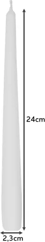 Stwórz przytulną atmosferę dzięki białym świecom stożkowym, które świetnie uzupełnią odświętny stół i wystrój wnętrz. Dzięki wysokości 24,5 cm i smukłej średnicy 2,3 cm prezentują się elegancko i pasują do większości klasycznych świeczników.
