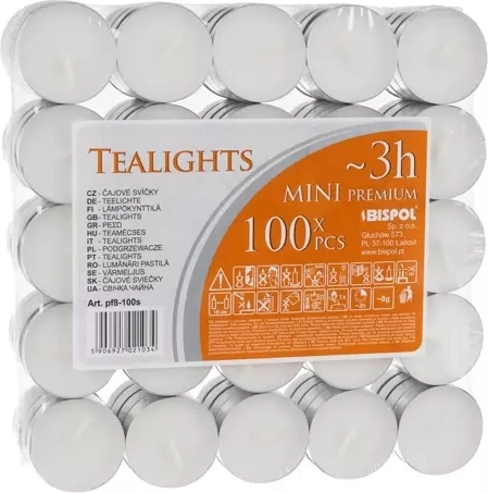 Duże opakowanie 100 szt. podgrzewaczy z czasem palenia do 3 godzin – do stworzenia przyjemnej atmosfery i praktycznych zastosowań. Dzięki wysokiej jakości mieszance parafinowej świeczki nie dymią, nie kopcą i wypalają się do końca. Są bezzapachowe, w metalowym tealight-cupie i świetnie sprawdzą się do kominków zapachowych, świeczników oraz do podgrzewania potraw.