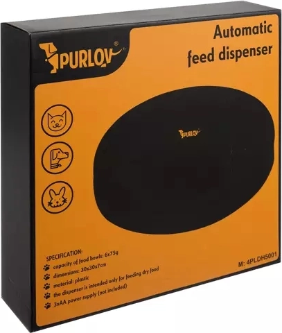 Dbaj, aby Twój pupil zawsze otrzymywał posiłek na czas dzięki inteligentnemu podajnikowi karmy PURLOY. Ten okrągły podajnik oferuje 6 komór po 150 ml, programowalny timer 1 min–24 h, czytelny wyświetlacz LED oraz praktyczne powiadomienia głosowe. Dzięki zasilaniu bateryjnemu działa bez przewodów, a wyjmowane elementy ułatwiają czyszczenie.