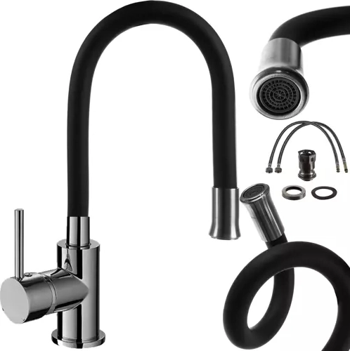 Elastyczna bateria kuchenna Ruhhy łączy elegancki wygląd z praktycznymi funkcjami dla maksymalnego komfortu przy codziennym użyciu. Obrót wylewki o 360° umożliwia łatwe ustawienie kierunku i wysokości strumienia wody, co ułatwia napełnianie dużych naczyń lub mycie dużych elementów.