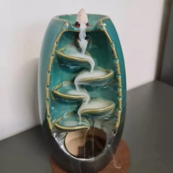 Ceramiczny kominek zapachowy wyróżnia się prostym i eleganckim designem. Po zapaleniu specjalnego kadzidła tworzy spektakularny efekt wodospadu z dymem przepływającym wstecz. Jest odpowiedni do każdego wnętrza, dostarcza nie tylko wizualnej, ale i aromatycznej przyjemności.