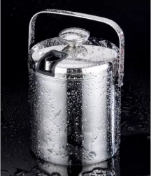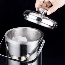 Ten stalowy kubełek na lód z zestawem dodatków to niezbędnik dla miłośników chłodzonych napojów. Dzięki podwójnym ściankom lód pozostaje dłużej zmrożony, a pojemność 1,3 l pozwala serwować kostki lodu na każdym spotkaniu. Ergonomiczny uchwyt ułatwia przenoszenie kubełka z zawartością.