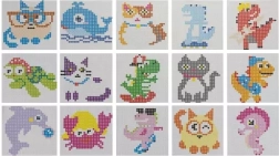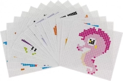 Dwie przezroczyste, łączone, kwadratowe podkładki oraz 15 motywów ze zwierzętami pomagają dzieciom precyzyjnie układać koraliki i radzić sobie z większymi obrazkami.