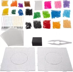 - 6500 koralików, 2 podkładki, 15 szablonów/wzorów, 10 magnesów, 15 zawieszek/breloków, 10 stojaczków, 5 papierów do prasowania, pęseta
