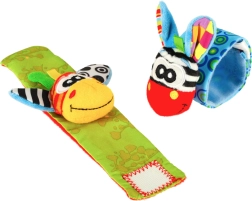 Zestaw zawiera 2 sztuki – w kolorze niebieskim i zielonym – do różnorodnej zabawy w domu i w podróży. Wykonane z bezpiecznego poliestru i spełniają certyfikację CE. Idealne na wczesny etap, gdy dziecko odkrywa swoje rączki i uczy się ich celowego używania.