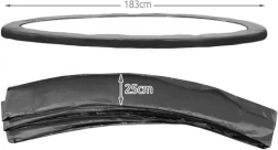 Ochronny brzeg jest uniwersalny i pasuje do większości trampolin o średnicy 180–183 cm. Montaż zajmuje chwilę i nie wymaga narzędzi – praktyczne gumki zapewniają pewne mocowanie. Aby dobrać właściwy rozmiar, wystarczy zmierzyć zewnętrzną średnicę swojej trampoliny.