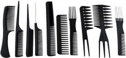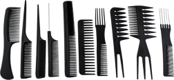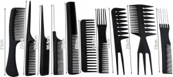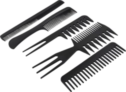 Zestaw grzebieni odpowiedni zarówno do salonów, jak i do użytku domowego, z możliwością różnych stylizacji.