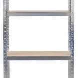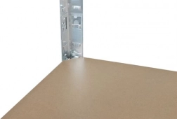 Metalowe nogi regału mają antypoślizgowe nakładki, które chronią podłogę przed uszkodzeniem i zapewniają maksymalną stabilność. Regały można łączyć w większe zestawy lub mocować do ścian dla większego bezpieczeństwa przy pełnym obciążeniu.