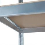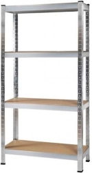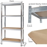 Solidny metalowy regał z 4 regulowanymi półkami został zaprojektowany, aby wytrzymywać duże obciążenia i jest idealny do użytku w różnych przestrzeniach, takich jak garaż, warsztat czy magazyn. Regał wykonany jest z ocynkowanej stali i odpornych płyt MDF, co gwarantuje długą żywotność i niezawodność.