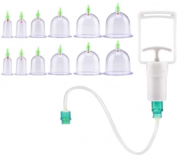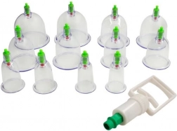 Zestaw zawiera 12 przezroczystych plastikowych baniek z zaworkami oraz ręczną pompkę próżniową, która wytwarza podciśnienie bez użycia ognia. Bańki są wielokrotnego użytku, lekkie i łatwe w czyszczeniu. Wykorzystasz je podczas relaksacyjnych masaży, regeneracji po sporcie oraz w rytuałach wellness ukierunkowanych na poprawę mikrocyrkulacji i ulgę w napięciu mięśniowym.