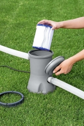 Konserwacja jest szybka i wygodna: wystarczy wyjąć wkład i opłukać czystą wodą. Dla najlepszych efektów zalecamy wymianę mniej więcej co 2 tygodnie, w zależności od intensywności użytkowania basenu. Korzystne opakowanie 2 szt. ułatwia regularną konserwację i minimalizuje przestoje (pompa nie jest częścią zestawu).