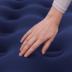 Ciesz się komfortowym snem gdziekolwiek – nadmuchiwany materac BESTWAY z aksamitnie miękką welurową powierzchnią jest przyjemny w dotyku i lepiej trzyma prześcieradło. Wytrzymała konstrukcja coil‑beam zapewnia stabilność i sprężystość, dzięki czemu materac zachowuje kształt i dobrze podpiera ciało.