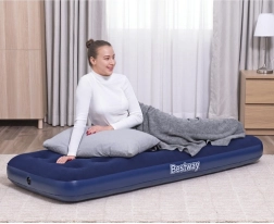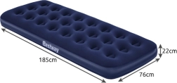 Praktyczny nadmuchiwany materac dla jednej osoby o wymiarach 185 × 76 × 22 cm marki BESTWAY jest idealny do domu i w podróż. Ma przyjemną w dotyku welurową powierzchnię, wytrzymałą konstrukcję coil-beam, zawór bezpieczeństwa ułatwiający pompowanie i spuszczanie powietrza, a w zestawie znajduje się także samoprzylepna łatka.