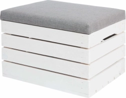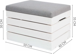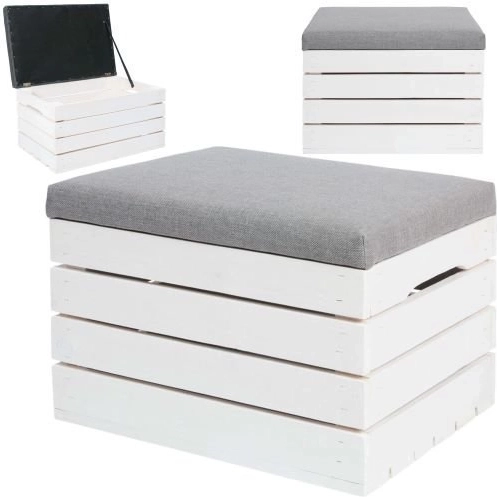 Odkryj uniwersalny puf taboret ze schowkiem, który oszczędza miejsce i pomaga utrzymać dom w porządku. Uchylna pokrywa z siedziskiem zapewnia szybki dostęp do przechowywanych rzeczy, a neutralne połączenie białego drewna i szarej tapicerki pasuje do nowoczesnych i klasycznych wnętrz.