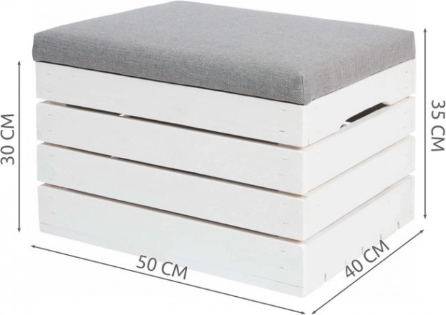 Solidne wykonanie z suszonego i struganego drewna świerkowego z szerokimi lamelami (do 13 cm) gwarantuje stabilność i długą żywotność. Wysokoelastyczna pianka T-25 zapewnia wygodne siedzenie, niezależnie czy użyjesz pufa jako ławki w przedpokoju, podnóżka przy sofie, czy praktycznego stolika odkładanego na balkon.