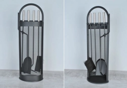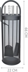 Zestaw zawiera wszystko, czego potrzebujesz do bezpiecznej i czystej obsługi kominka: hak/poker, szczypce, szufelkę, szczotkę oraz stojak z osłoną i uchwytem do łatwego przenoszenia. Solidna stal i mocne wykonanie gwarantują długotrwałe użytkowanie, a podstawka stojaka zatrzymuje kurz i popiół, aby Twój dom pozostał czysty.
