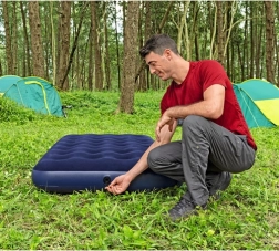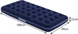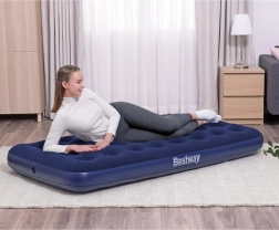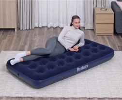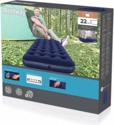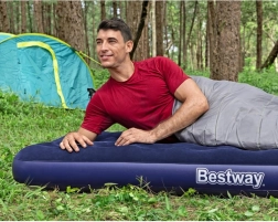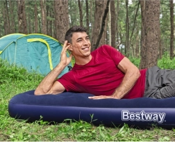 Praktyczny nadmuchiwany materac dla jednej osoby marki BESTWAY jest idealny na kemping, do namiotu oraz jako wygodne łóżko dla gości. Wytrzymałe PVC z miękką welurową powierzchnią zapewnia komfort i długą żywotność, a faliste/coil-beam komory gwarantują stabilność i podparcie. Dzięki szybkozrzutowemu zaworowi z blokadą materac szybko napompujesz i spuścisz powietrze, a także łatwo wyczyścisz.