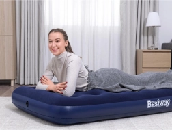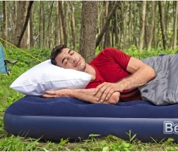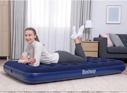 Ciesz się komfortowym snem w dowolnym miejscu. Jednoosobowe nadmuchiwane łóżko BESTWAY łączy wytrzymałe PVC i przyjemny welur dla wygodnego leżenia bez ślizgania się pościeli. Wewnętrzna konstrukcja coil-beam równomiernie rozkłada ciężar i gwarantuje stabilność przez całą noc.
