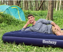 Dmuchany materac Bestway Pavillo King to niezawodny wybór na kemping, dla gości oraz do codziennego relaksu. Stabilny wewnętrzny stelaż Coil‑Beam naśladuje sprężynujący efekt klasycznych materacy, zapewnia równomierne podparcie ciała i komfortowy wypoczynek. Górna warstwa z miękkiego weluru jest przyjemna w dotyku i zapobiega ślizganiu się prześcieradła.