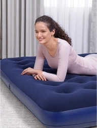 Wytrzymały materiał winylowy (PVC) znosi częste użytkowanie, a praktyczne zawory do szybkiego pompowania i spuszczania powietrza z blokadą oszczędzają czas przy rozkładaniu i pakowaniu. Wymiar 203 × 183 × 22 cm wygodnie mieści dwie osoby, dzięki czemu idealnie sprawdzi się w salonie i w namiocie.