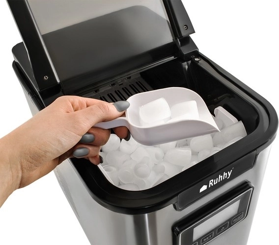 Producent lodu Ruhhy jest idealnym rozwiązaniem do przygotowywania napojów z lodem w domu i biurze. Dzięki jego dużej pojemności sięgającej 12 kg lodu dziennie i możliwości produkcji trzech różnych rozmiarów kostek (S/M/L) zawsze można mieć kostki lodu dokładnie według potrzeb. Wystarczy napełnić zbiornik wodą, wybrać rozmiar kostek i cieszyć się lodowym odświeżeniem w ciągu kilku minut.